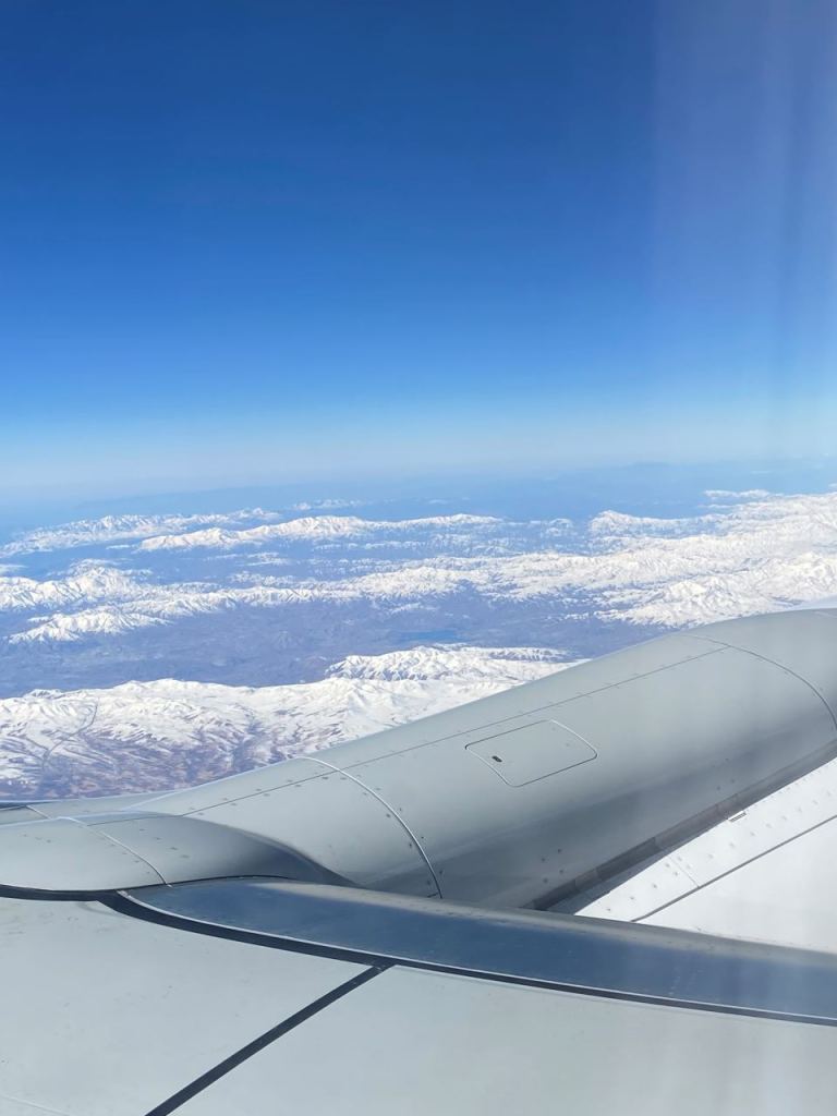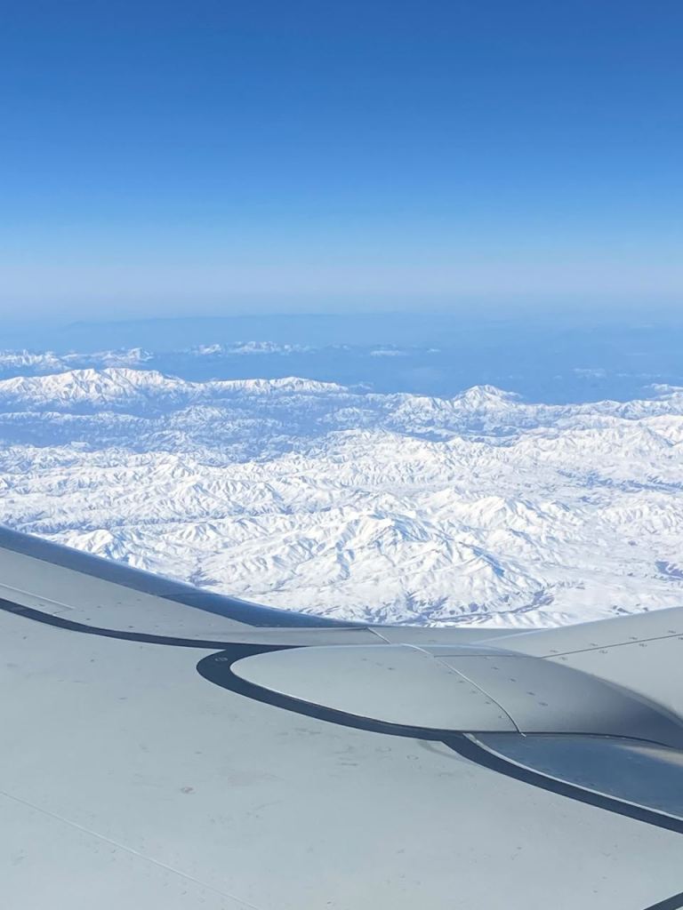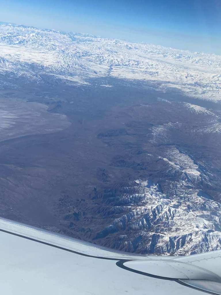 Kurz nach unserem Abheben bekommen wir einen letzten Blick auf die Megastadt Dubai, die Downtown und den Burj Khalifa zu sehen. Nach wenigen Minuten dreht sich unsere Maschine und fliegt in Richtung Meer bzw. dem Iran. Was mich schon etwas verwundert, da die Arabischen Emirate und der Iran nicht die allerbesten Freunde sind. Unser Weg geht weiterhin durch das Landesinnere des Irans, wir kommen in Nähe der 2 Millionen Stadt Isfahan vorbei.