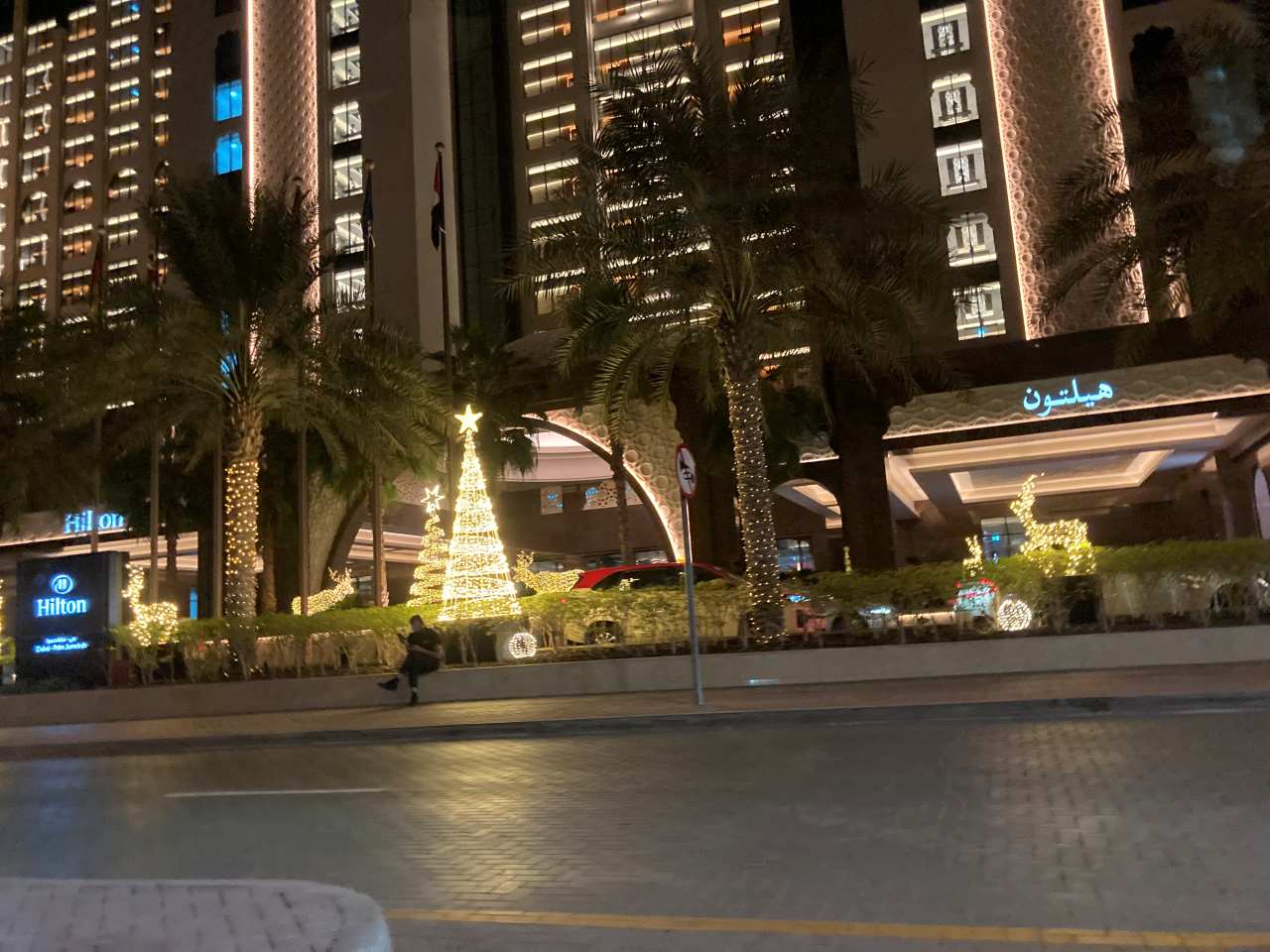 Wie man auf den Bildern erkennen kann, ist die Promenade sehr schön und gut für einen Nächtlichen Spaziergang geeignet. Hier befinden sich ein paar der fünf Sterne Hotels von Dubai. Das erste Hotel links von unserem Marriot Resort ist das Hilton Hotel, danach kommt das Five Palm Jumeirah am Beginn der Insel. Gleich danach kommt die Brücke zum Festland. Von unserem Hotel zur rechten Seite kommt das Voco Dubai The Palm, anschließend das Radison Beach Resort und zum Schluss das Fairmont the Palm.