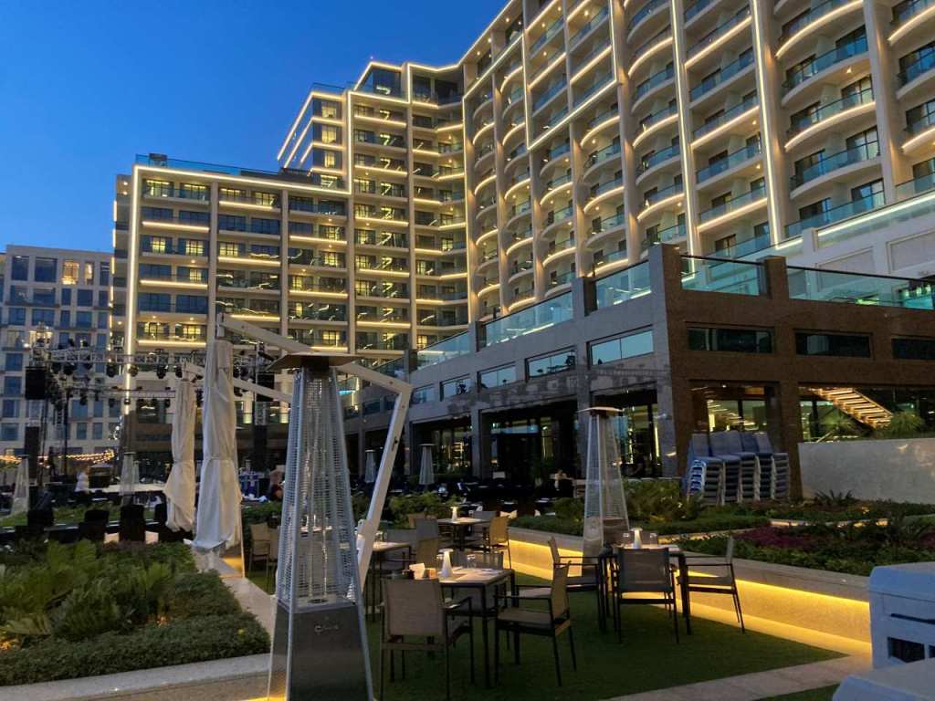 Wir sind ganz normal gegen 8:00 aufgestanden und haben uns zum Frühstücken fertig gemacht. Laut den Nachrichten über WhatsApp, das ist zeitweise unsere einzige Nachrichtenquelle von unseren Kindern, sind sie heute Morgen wohl gesund. Wir verlassen das Hotel durch den hinteren Eingang und gehen über die Pool-Terrassen in Richtung Levantera Restaurant. Hier mussten wir feststellen, dass die Arbeiter vom Hotel alle Badeliegen und Sonnenschirme auf der ersten Pool-Terrasse entfernt haben. Das heißt das heute etwa bis 40 Badeliegen am Pool fehlen werden. Zu dieser frühen Stunde sind noch viele Badeliegen frei, die Hotelgäste die gestern Abend in der Stadt verbracht haben, haben die fehlenden Liegen noch gar nicht bemerkt. Ich hole mir ein paar Handtücher von der Poolaufsicht und belege damit unsere Liegen. Andere Gäste machen es ja auch jeden Tag.