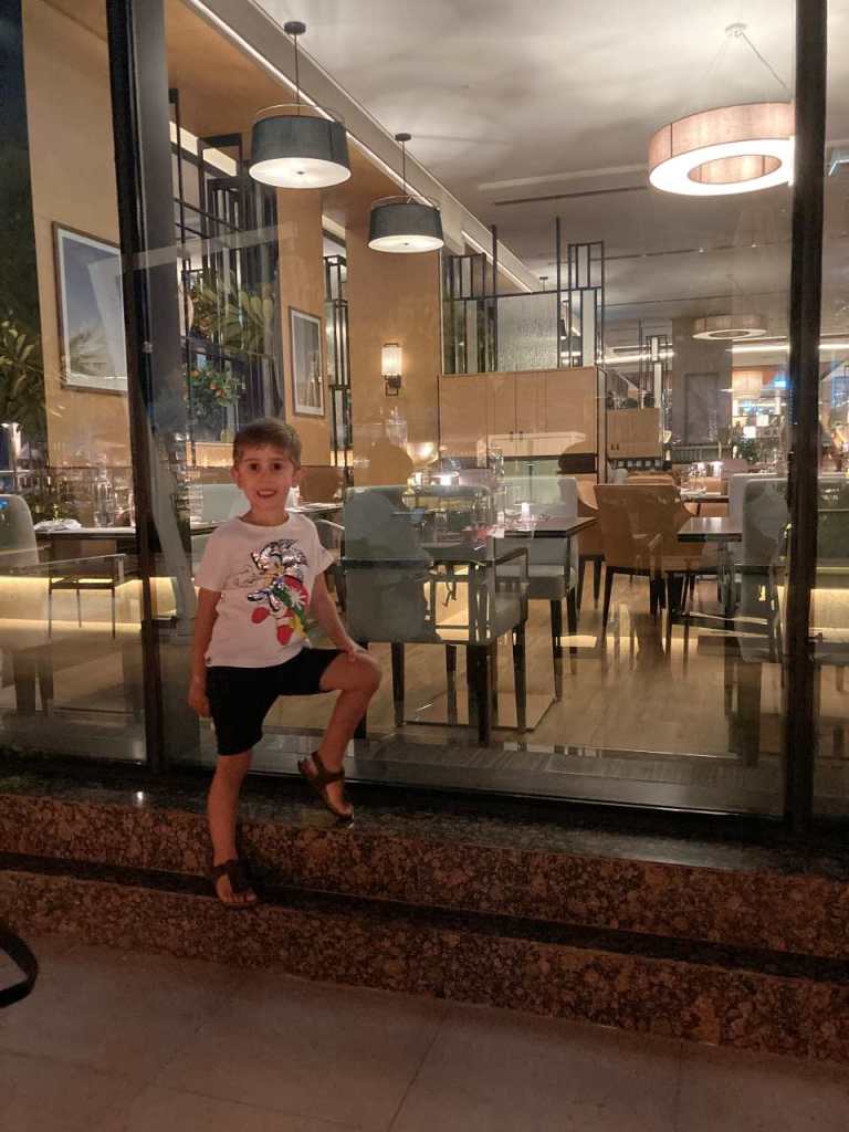 Wir haben hier im Hotel nur Zimmer mit Frühstück bestellt, da wir uns frei entscheiden wollten, wo und wann wir essen wollten. Heute Abend bleiben wir im Hotel, unser Kleinster sollte rechtzeitig ins Bett.