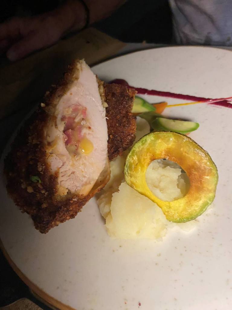 Beim Bestellkellner ich glaube es war Mohammed der ältere Ober, (er ist nicht unsere erste Wahl) nimmt unsere Bestellung mit seinem kleinen Tablet auf. Zum Trinken bestellen wir Rotwein der ganz ausgezeichnet schmeckt. Als Suppe nehme ich eine Linsensuppe und als Hauptspeise wähle ich ein Chicken Cordon bleu das sehr gut schmeckt, aber mit zwei großen Stücken mir zu groß ist. Ich nehme in der Regel nur zwei Gänge + Dessert das meistens aus einer Schale mit Eiskrem besteht.