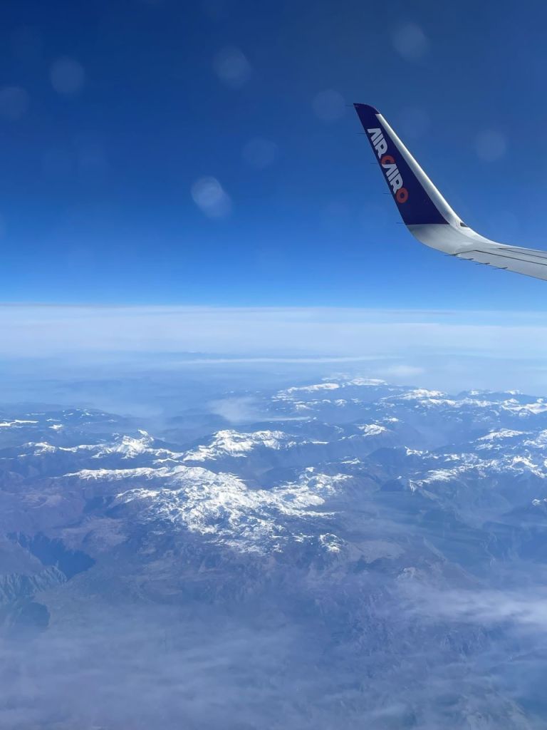 Die Bilder die wir machen können, verraten uns teilweise die Flugroute. Es geht über den Schneebedeckten Balkan, bis wir dann später über den Ägäischen Inseln angekommen sind.