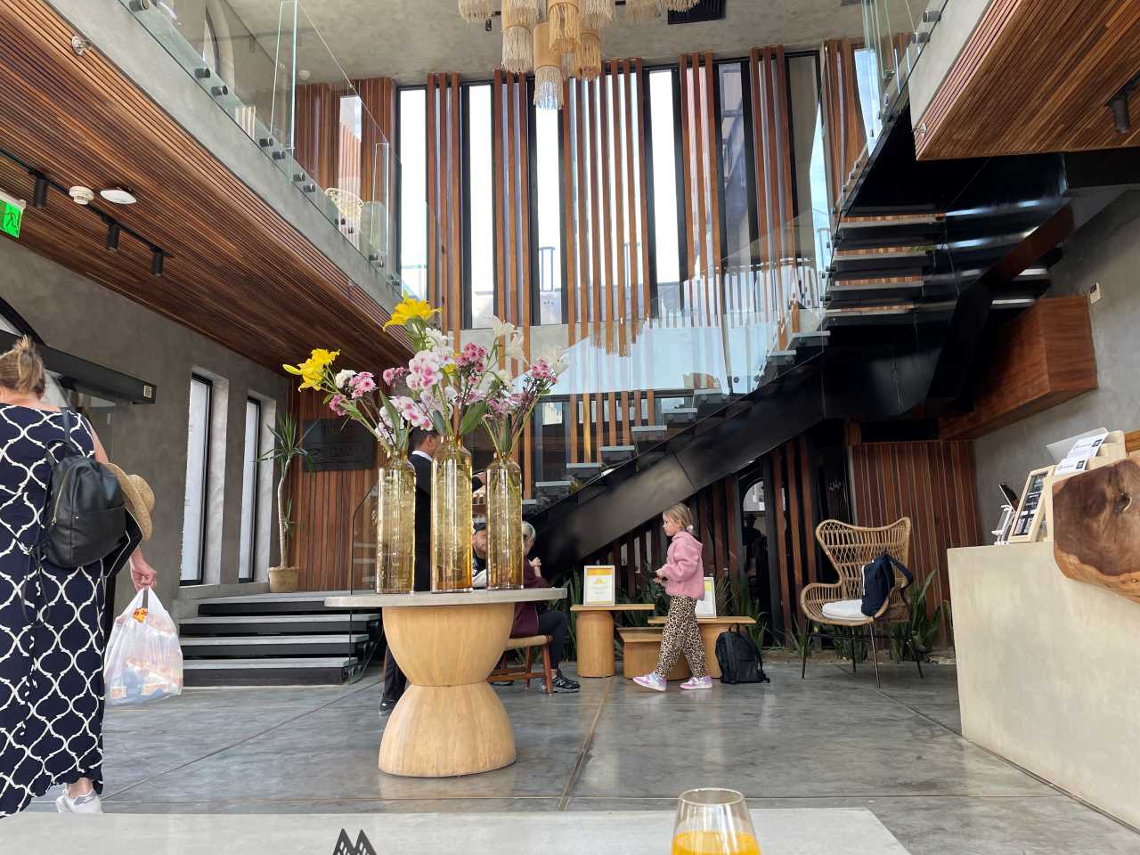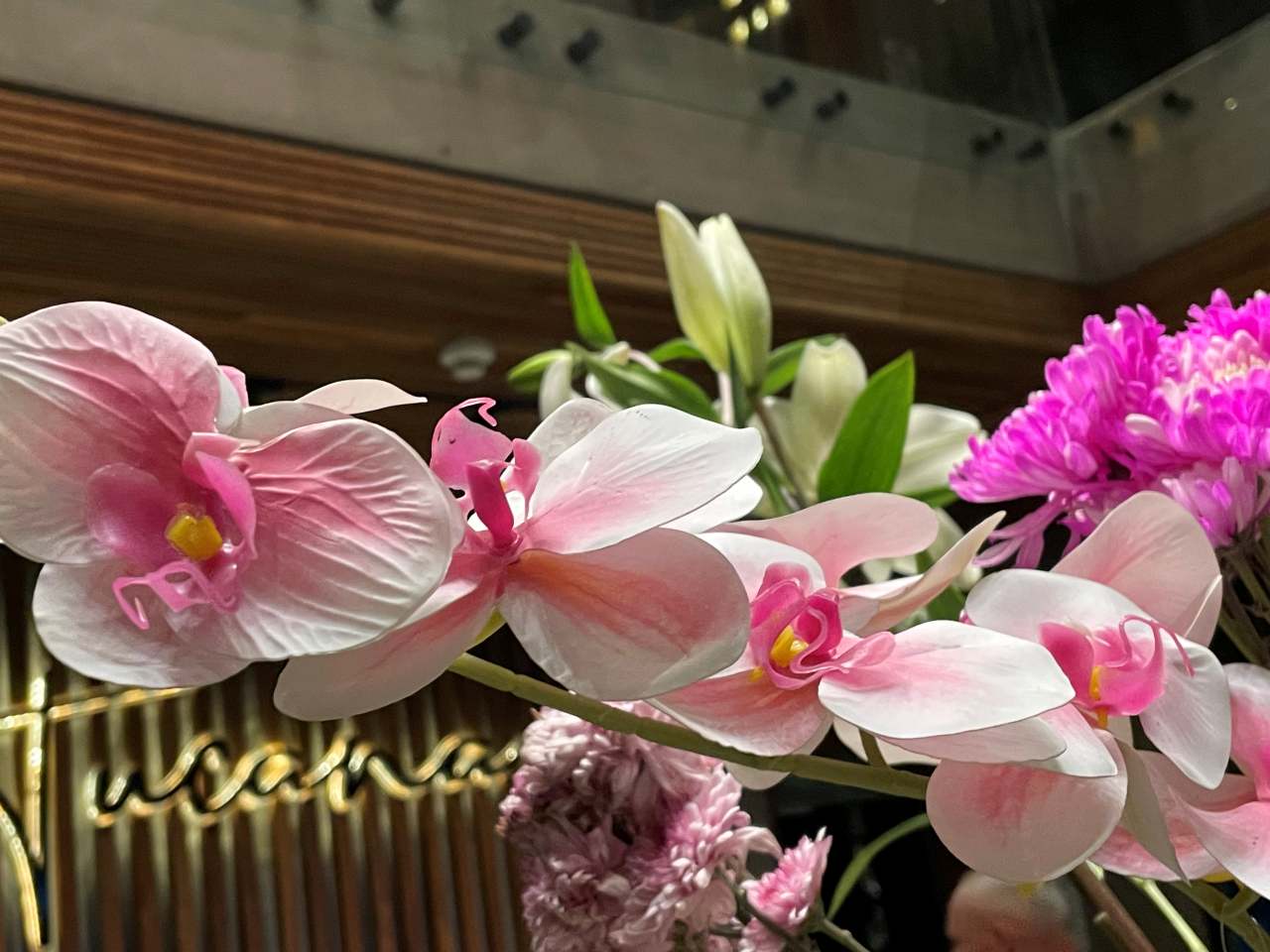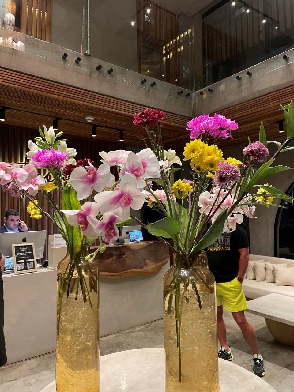 An der Wand im Hintergrund zwischen dem Lucina-Restaurant und dem Treppenaufgang zum Gaia-Restaurant und der Anjum-Bar sind kleine Ständer mit Cocktail-Gläsern und kleinen Schalen mit Erdbeeren aufgestellt. Nach der netten Tanzvorführung hole ich mir eine Schale der schönen Erdbeeren.