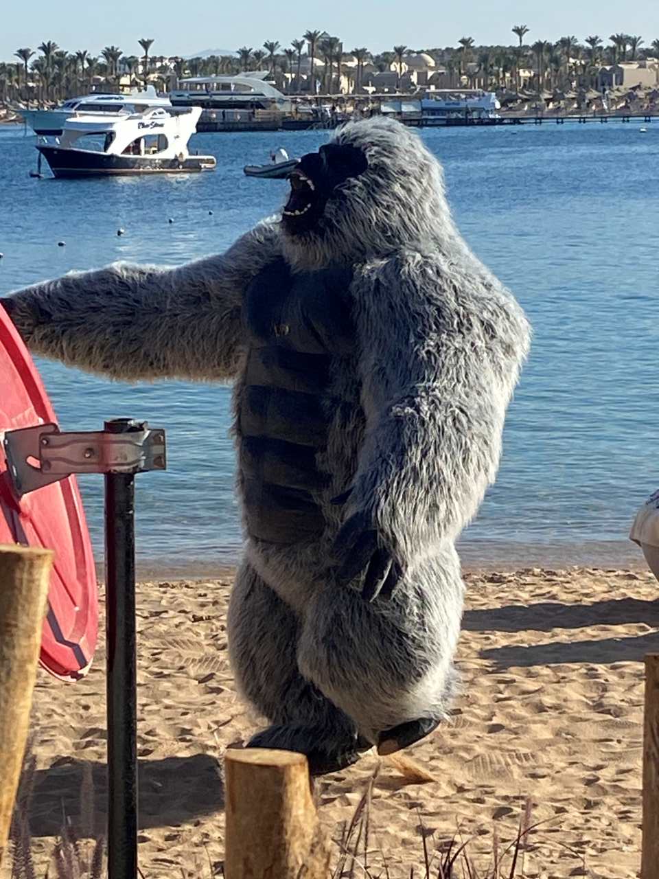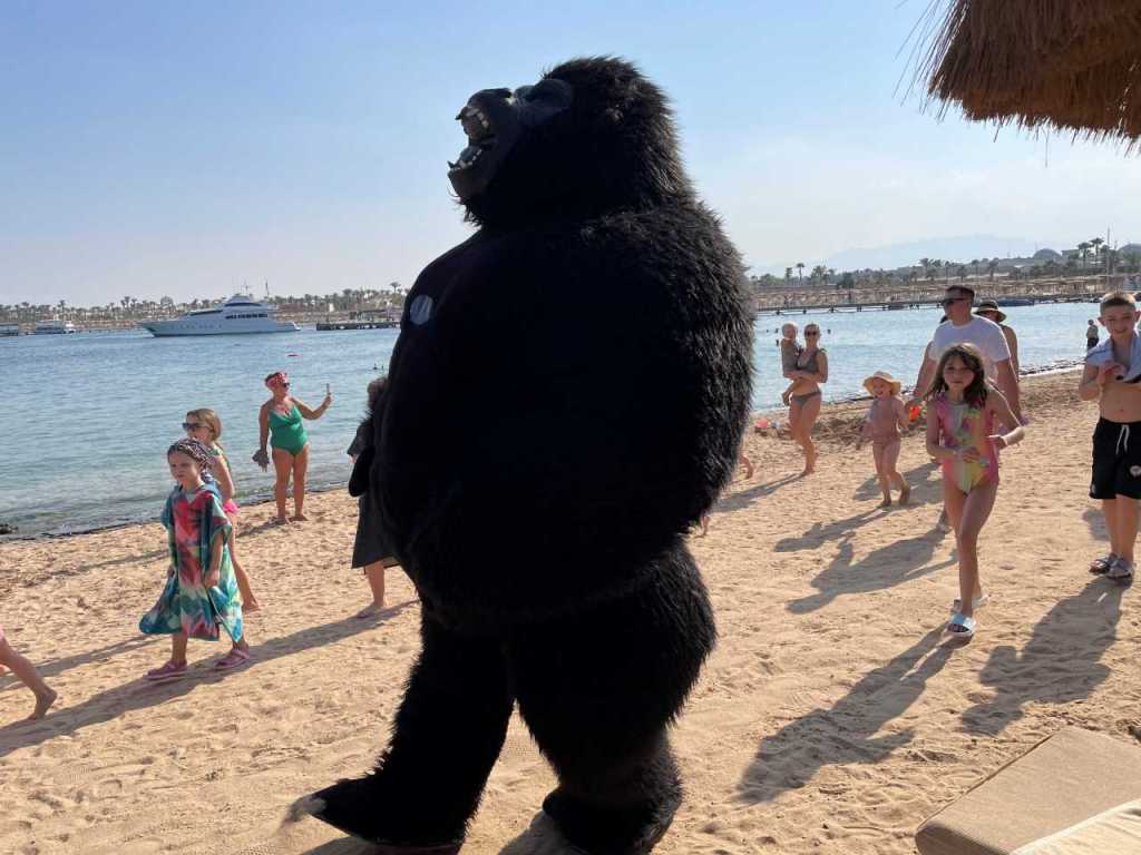 Gegen 15:30 brechen wir zur Yades Bar (Griechisches Restaurant) auf, um einen CubaLibre und einen Mojito zu trinken. Eine halbe Stunde später machen die Animateure auf dem Strandabschnitt von unserem Hotel in Afrikanischer Verkleidung eine Vorführung , so eine Art Step-Tanz. Wenig später kam noch ein Riesen Gorilla auf den Strand.