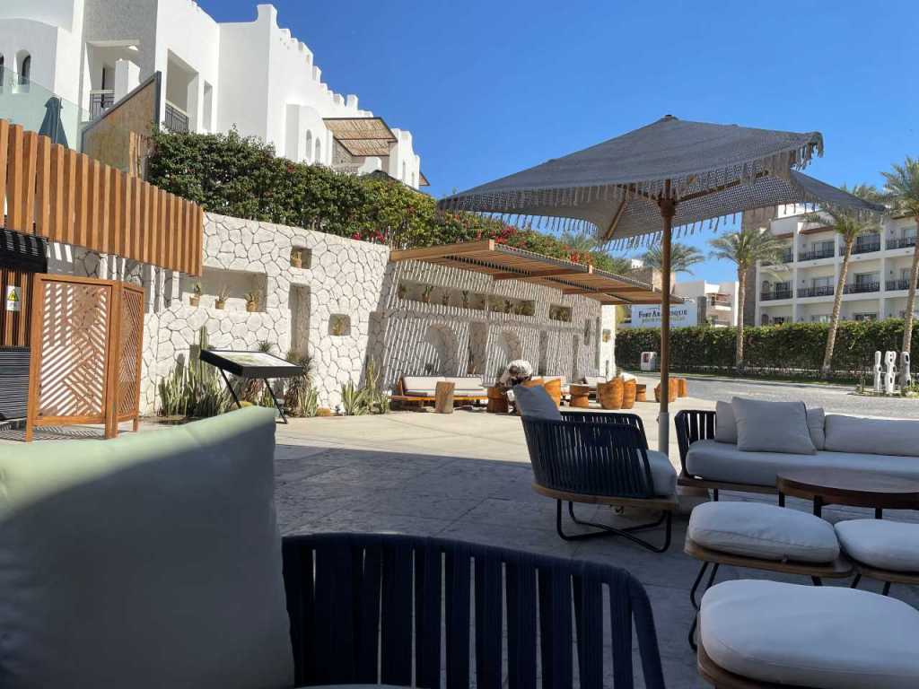Das letzte Hotel in der Reihe ist das Grand Makadi, es ist auch das älteste Hotel von Red Sea hier in der Makadi Bay. Wir waren im Jahr 2011 das erste Mal im Grand Makadi. Unser Zimmer war in der Nähe der Rezeption und der großen Terrasse mit seinen vielen Sitzgelegenheiten für Cafe`s und Restaurants.
