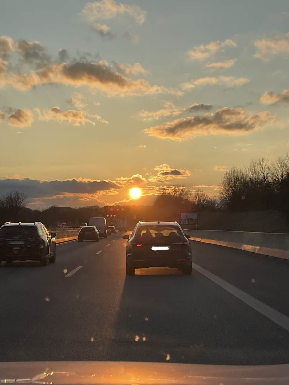 Zum ersten Mal seit langer Zeit hatten wir einen Co-Piloten der unsere Flugroute mitteilte. Von Hurghada ging es zuerst nach Westen, wir überflogen Alexandria und Kreta, danach kamen wir an Santorin und Athen vorbei. Von hier geht es in Richtung Thessaloniki, über Dalmatien, Kosovo und den Balkan hinauf. Weiter geht es dann über Slowenien und Klagenfurt im Anschluss über Salzburg, wir sind schon seit Klagenfurt im Sinkflug auf München. Im Landeanflug auf München hatten wir ein paar Turbulenzen, beim Aufsetzen auf der Landebahn gab es eine ziemlich harte Landung. Um 16:25 sind wir in München angekommen, wie üblich müssen wir eine Weile warten, bevor wir die Maschine verlassen können. Beim Abstieg auf die Passkontrolle und die Kofferebene ließ uns eine Rolltreppe im Stich. Auf unsere Koffer mussten wir schon eine Weile warten, das Band unterbrach immer mal den Lauf, bevor es weiterging. Es war dann schon 17:00 vorbei als wir den Terminal verlassen können und unseren Parkfly-Service anrufen können. Er bringt uns in die Parkgarage wo unser Auto schon wartet. Wir haben keine gute Zeit für die Heimfahrt erwischt, es herrschte Feierabend-Verkehr auf der A92 und A99. Aber wir hatten wenigstens einen schönen Sonnenuntergang.