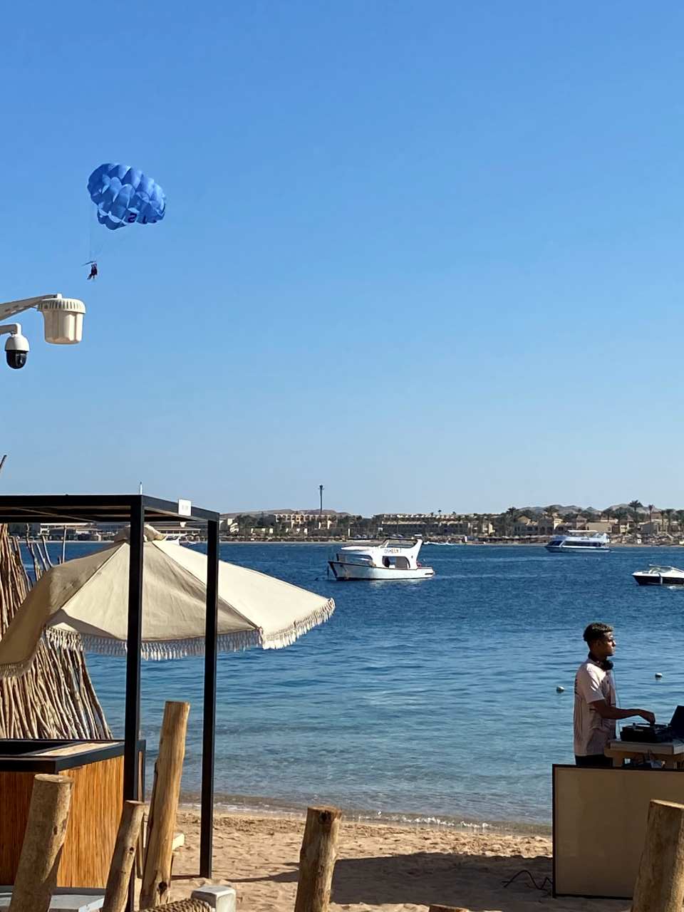 Wir gehen weiter bis zum Ende des großen Fort Arabesque Strandes, wo sich der Club 159 befindet. Gleich dahinter schließt sich der Strandabschnitt vom Prima Life Hotel ebenfalls ein Vier Sterne Haus an. Der immer gut besucht ist, allerdings sind die Badeliegen und Sonnenschirme meiner Ansicht in billiger Ausführung. Bei den Bademeistern stehen große Musikboxen, die meistens laute Musik spielen. Durch eine Absperrung aus 3 uralten Windschotten, mit einem Schild (Privatbesitz) verziert, hier beginnt das Gelände der Red Seas Hotels.