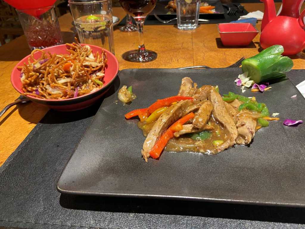 Aber es geht alles gut, wir können ohne Gesundheitliche Folgen uns Duschen und für den weiteren Abend vorbereiten. Heute geht es in das Manzoku Restaurant (asiatisch) wo wir vor ein paar Tagen vergeblich am Eingang gewartet hatten. Als wir gegen 18:30 im Manzoku eintreten, erwartet uns eine Überraschung. Der nette Kellner der uns gestern Abend im Chimichurri Restaurant (Steakhouse) bedient hat, erwartet uns auch heute und begleitet uns zu einem 2er Tisch. Im Gespräch erzählt er uns, wenn im Steakhaus Ruhetag ist, bedient er hier im Manzoku.
