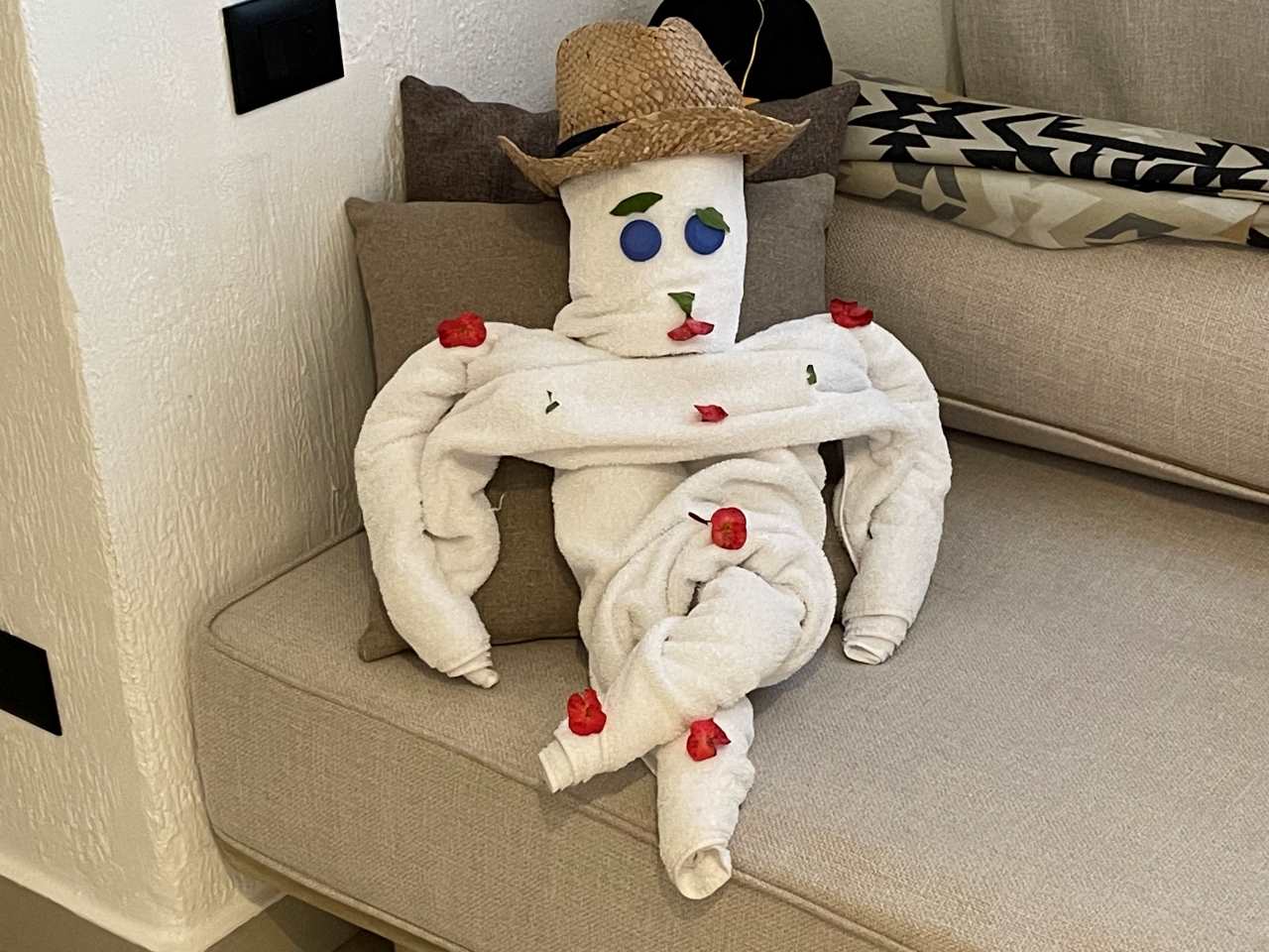 Kurz vor 17:30 verlassen wir den Pool und gehen in unser Zimmer zurück. Als wir unser Zimmer betreten sehen wir einen Gast auf dem Sofa sitzen. Anscheinend hat ihn der Zimmerboy herein gelassen.