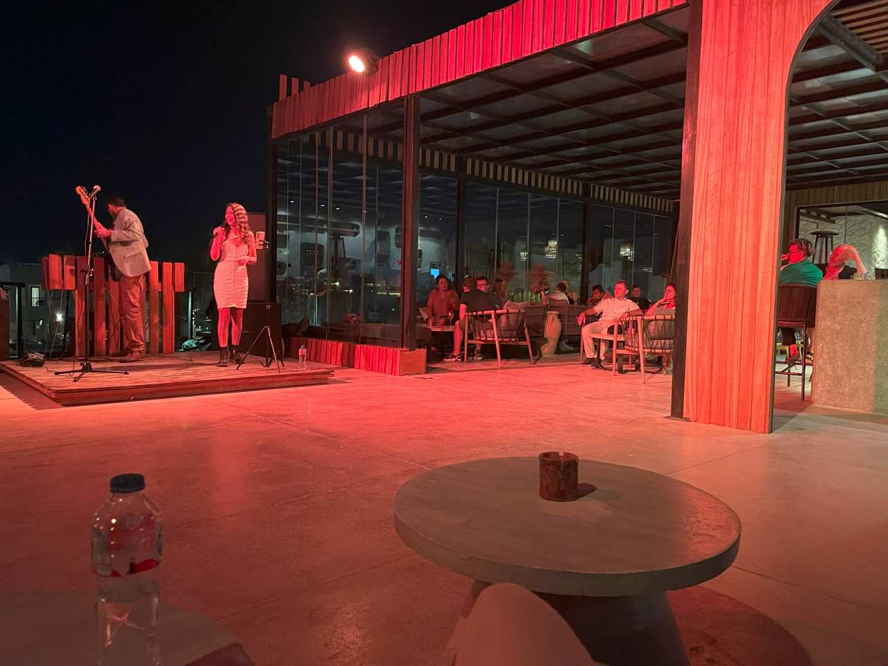 Nach dem Ende der Veranstaltung machen wir einen Spaziergang ins Sunrise Royal wo ebenfalls Musik spielte, und die meisten Tische an der Splash-Bar waren belegt. Auf dem Rückweg ins Tucana Resort begegneten wir unser Platzdame, die offensichtlich jetzt Arbeitsende hat, und in ihr Zimmer geht. Wir gehen noch in die Anjum-Bar hinauf, bei einem jungen Holländer finden wir einen Sitzplatz. Er konnte etwas Deutsch, aber unser Gespräch miteinander war leider etwas Mühsam. So verließen wir die Anjum-Bar nach einer halben oder dreiviertel Stunde. Wir gehen aber dieses Mal zurück in unser Zimmer, auf dem Balkon trinken wir noch eine Kleinigkeit, bevor es ins Bett geht.
