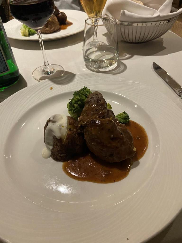 Zum Essen bestellen wir beide ein Rinderfilet, das vorzüglich geschmeckt hat.